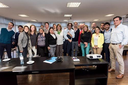 Gustavo José André Escuderode pie en el extremo derecho en una reunión en la Fundación Pensar.