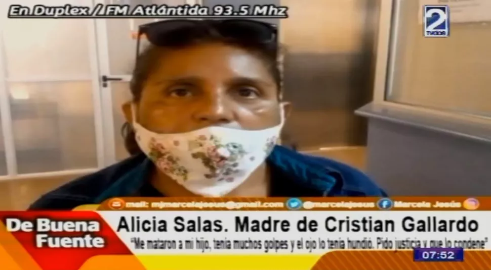 Alicia Salas, madre de Cristian Gallardo, dijo en De Buena Fuente con Marcela Jesús, que "existen falsos testimonios en el juicio, cosas que no concuerdan porque se escuchó que ya venían investigando a su hijo, cuestión que no es real ya que estaba trabajando en Embarcación, antes que suceda el hecho".