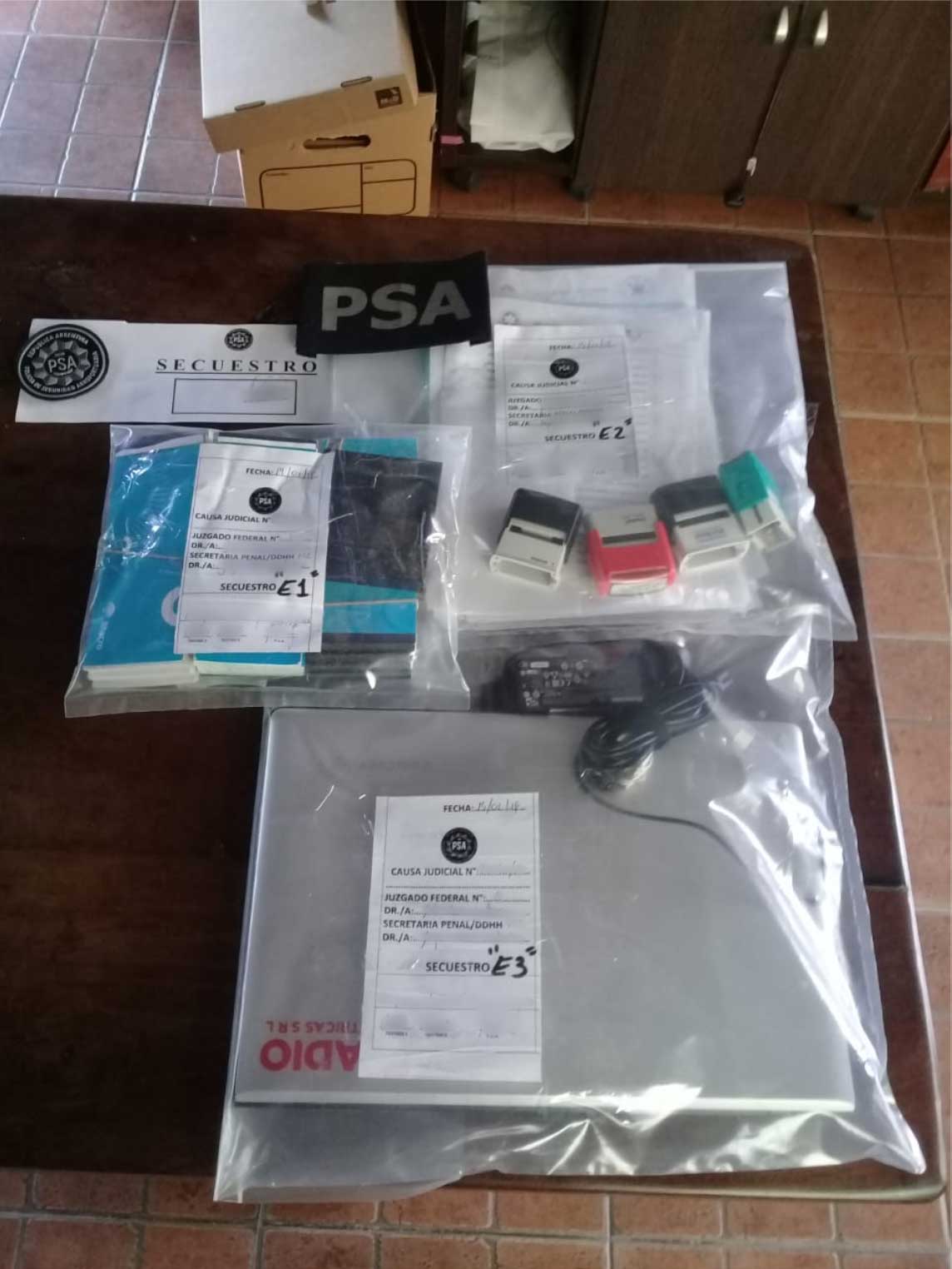 Como resultado de la requisa de los inmuebles, realizada junto a personal de la AFIP-DGI Delegación Salta, se secuestró gran cantidad de documentación en formato papel y digital, notebooks, CPU, DVD, sellos y chequeras de sumo interés para la investigación. Además incautamos 19.000 dólares y 20.000 pesos, lo cual quedó a disposición del Juzgado Federal de Salta N° 1, a cargo de Julio Leonardo Bavio.